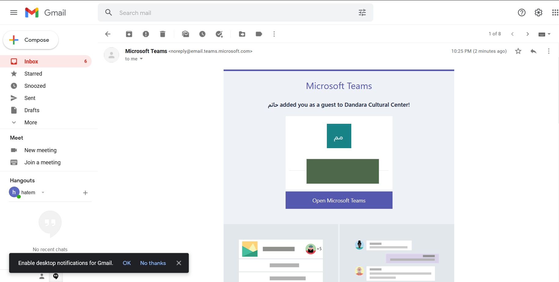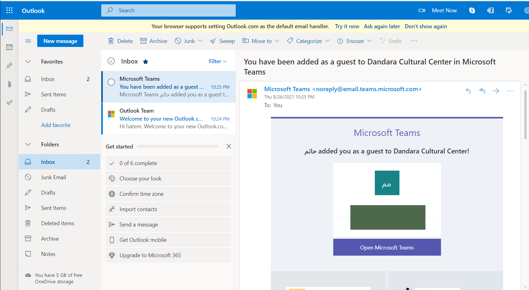 1- لتفعيل حسابك يجب الضغط على زر Open Microsoft Teams