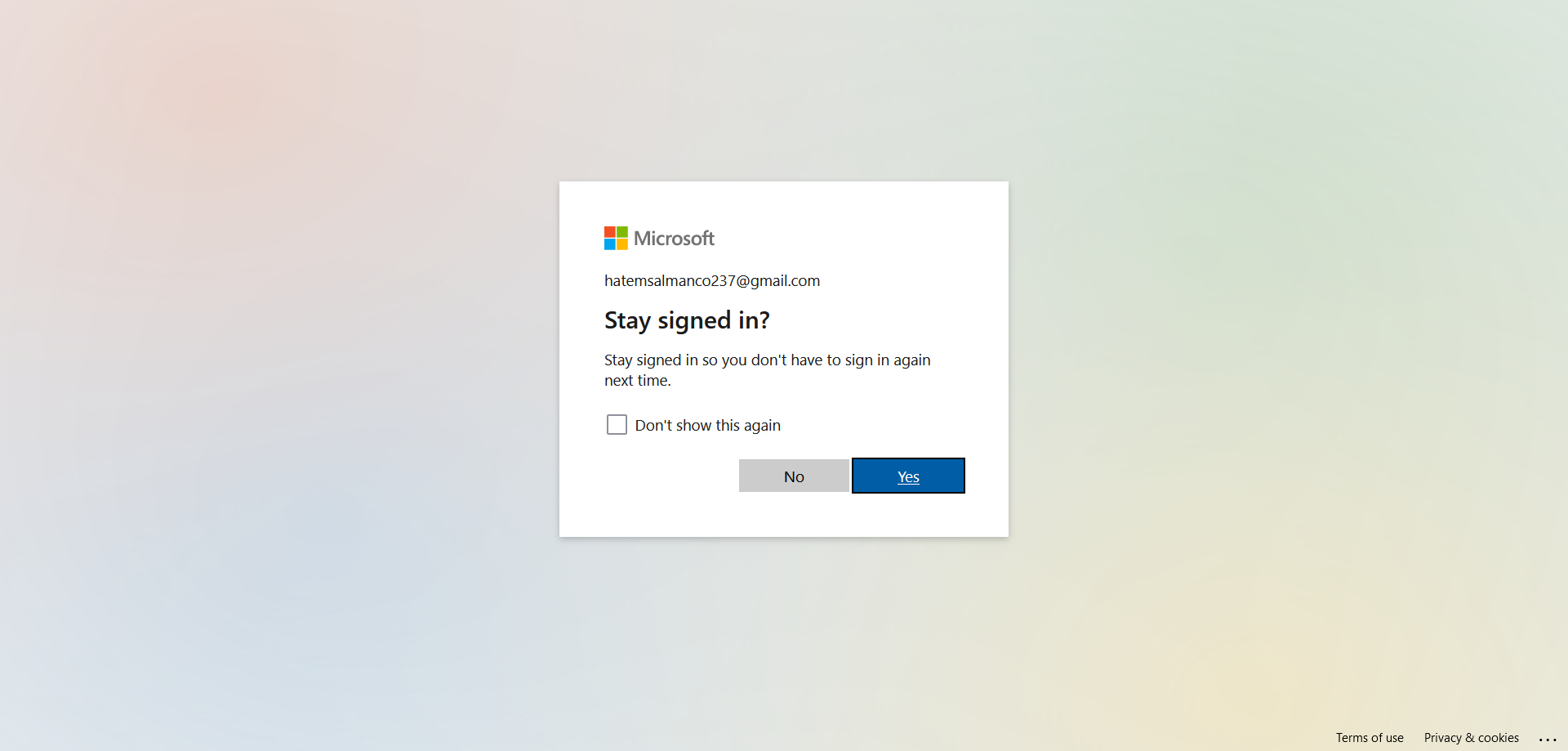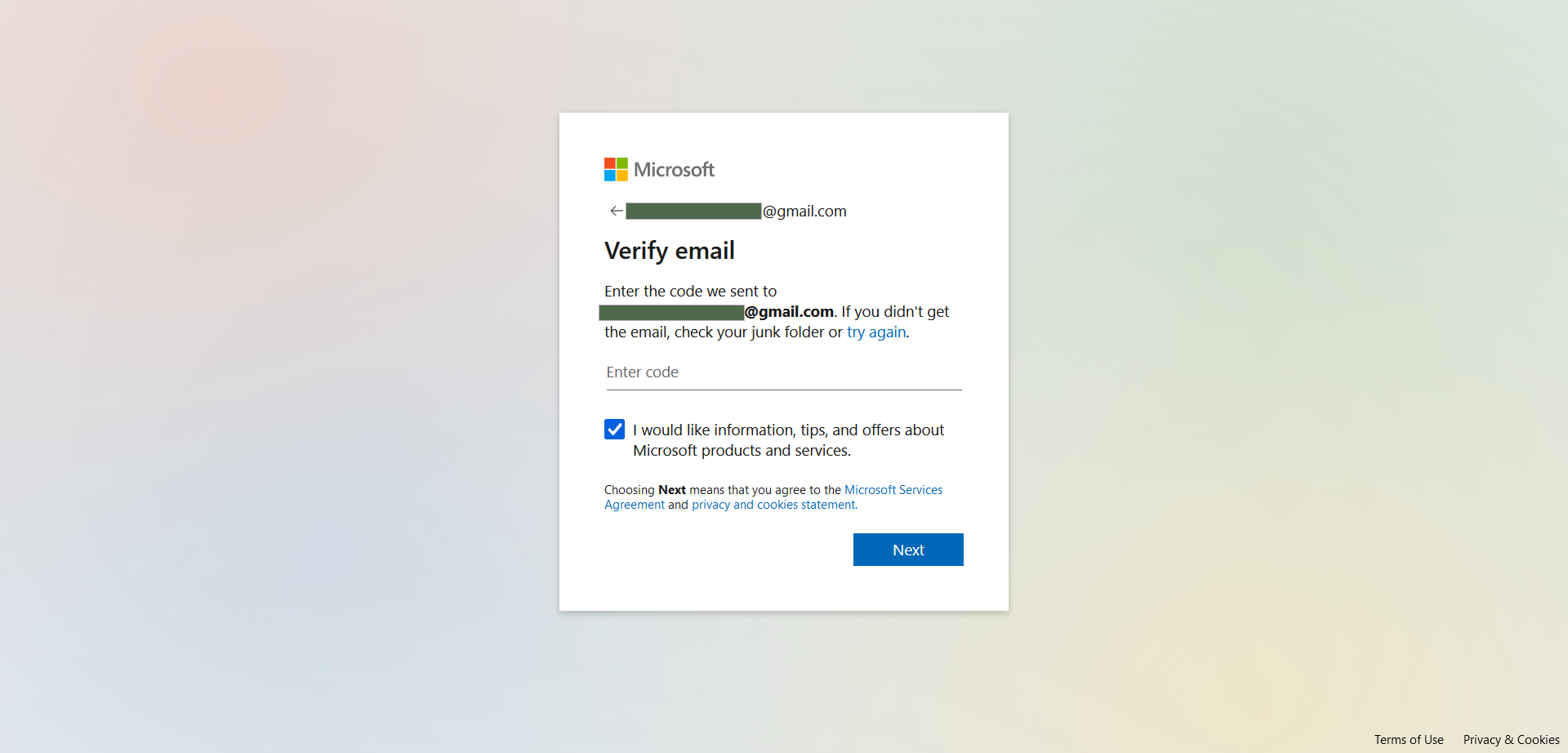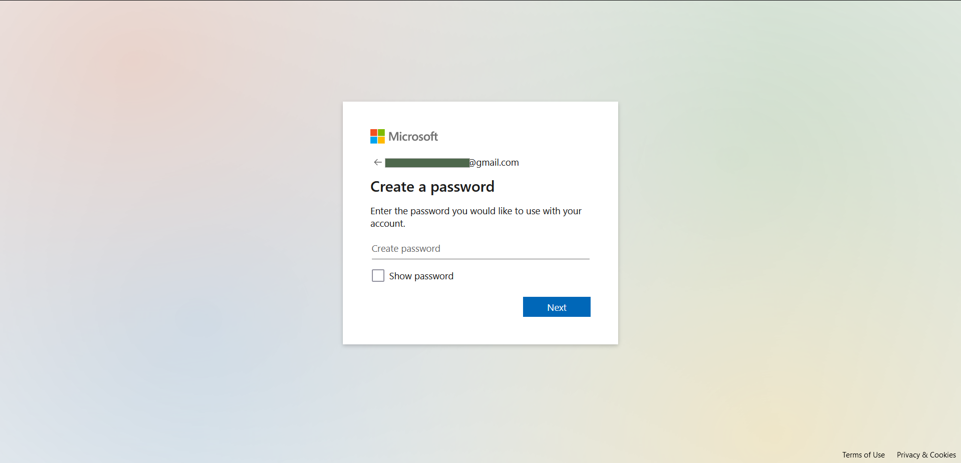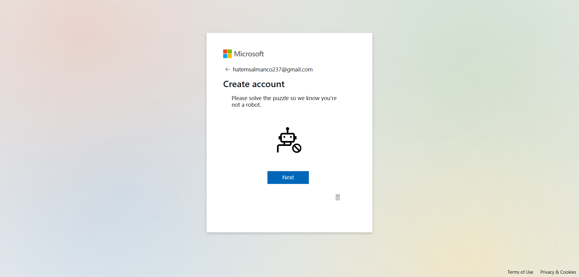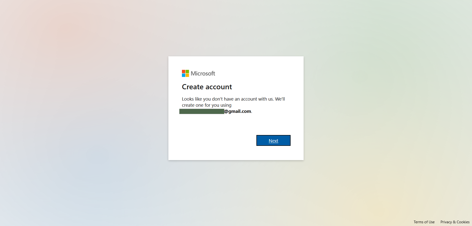 2- اذا لم يكن لديك حساب على ممنصة مايكروسوفت سيطلب منك انشاء حساب ببريدك الشخصى - اضغط Next