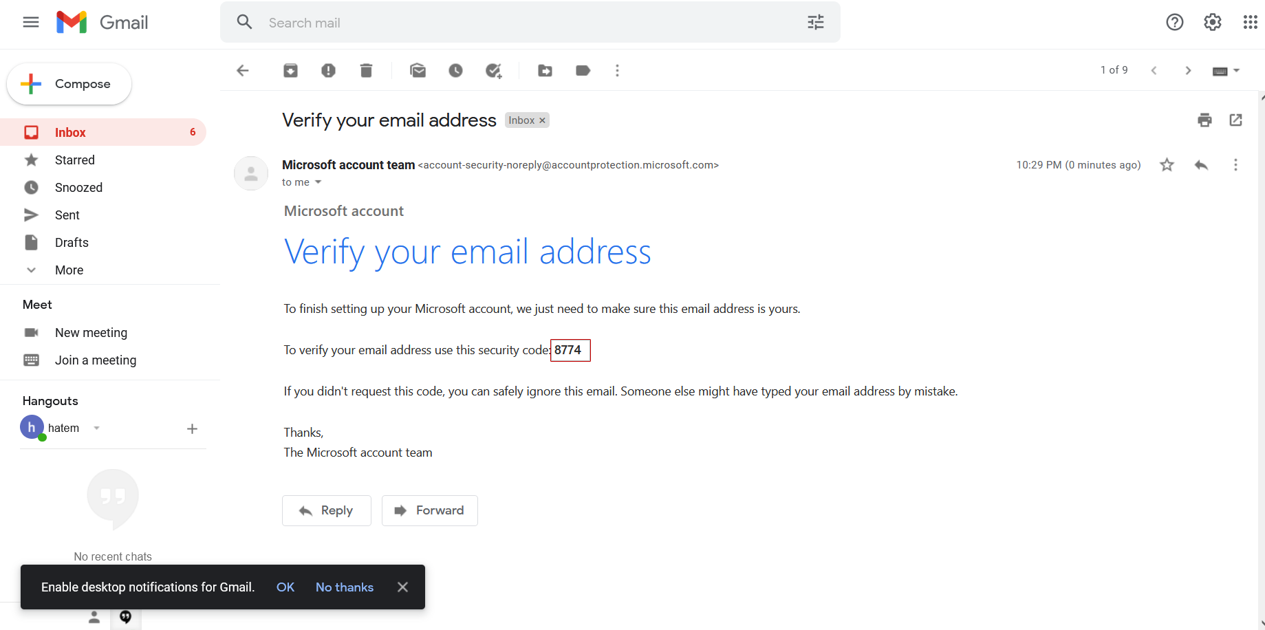 5- سوف تجد الكود فى بريدك الإلكترونى هنا