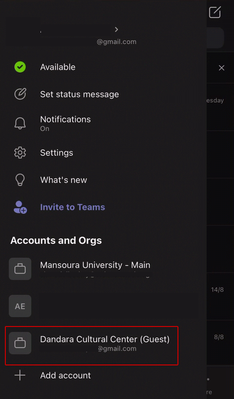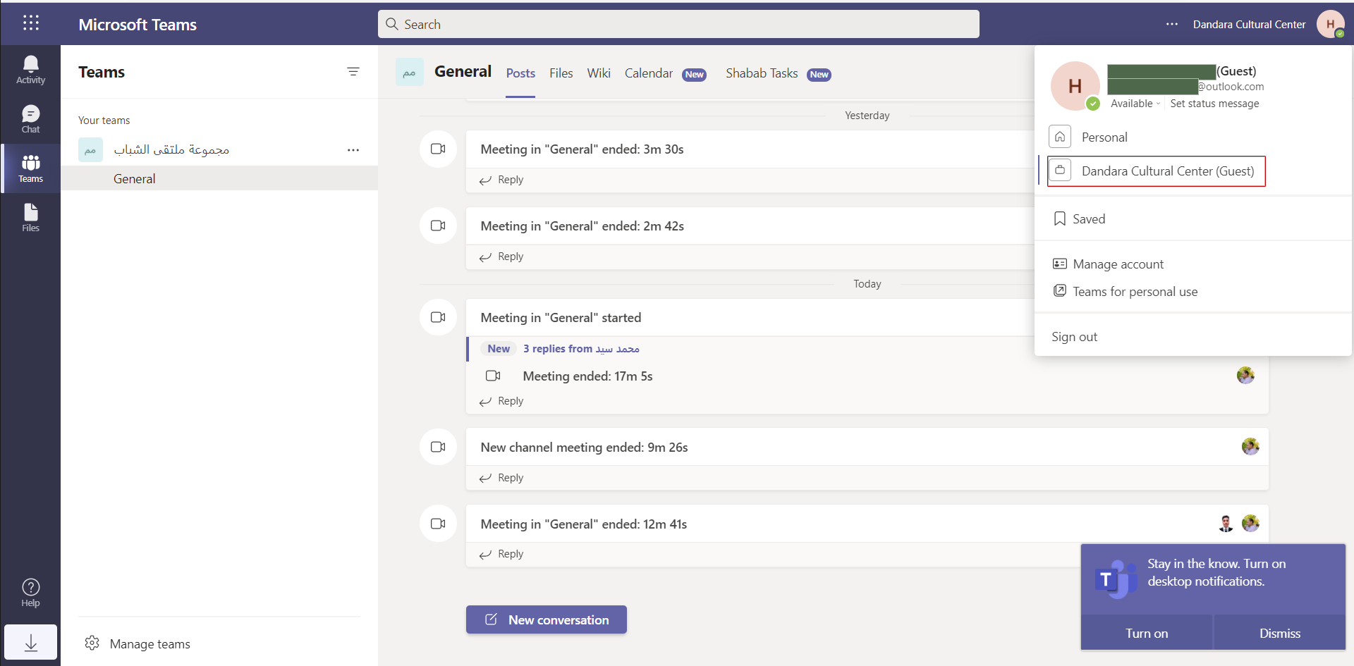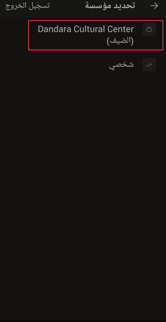 2- بعد الدخول تأكد من انك على حساب Dandara Cultural Center(Guest) وليس على الحساب الشخصى
